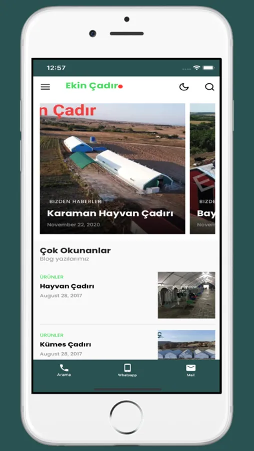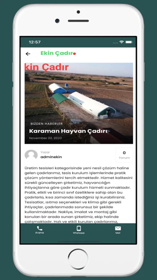 Günümüz gelişen teknolojisini ürettiği çadırlarda da kullanan firmamız bu teknolojik yönünü websitesi ile birlikte şimdide mobil uygulaması ile hayata geçirmiştir. Bu uygulamamız ile bizlere herzamankinden daha hızlı ulaşabilecek ürün ve hizmetlerimize daha kolay ulaşabileceksiniz. Uygulama altında yer alan whatsapp, mail ve telefon ile arama butonları ile bize anında ulaşabilir, sorularınıza anında cevap alabilirsiniz.