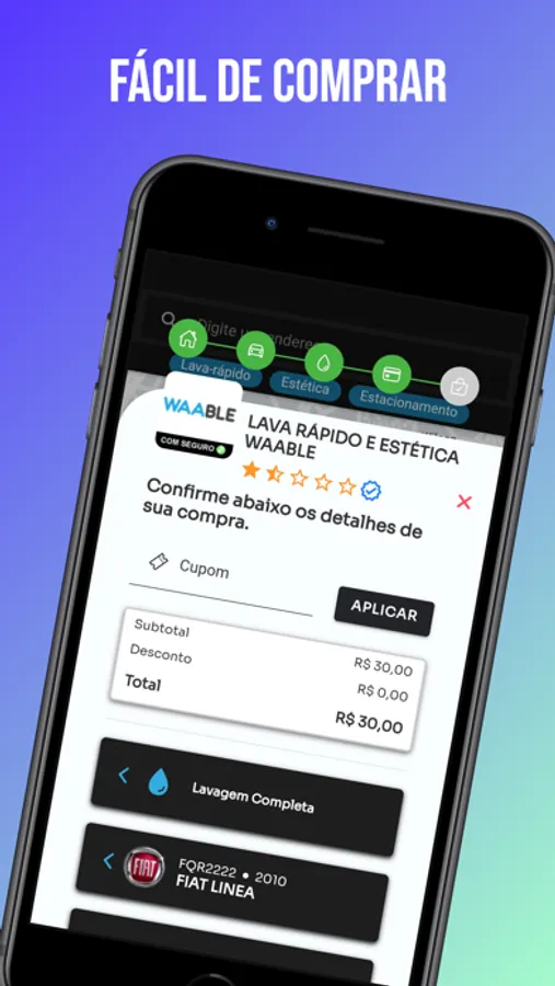 É muito simples basta abrir o app, olhar os lava-rápidos parceiros próximos a sua localização, fazer a compra do voucher e levar seu veículo até o lava-rápido que será recepcionado, onde o parceiro já