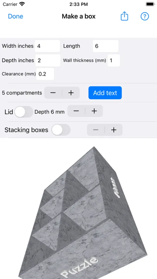 Easily create various boxes for 3D printing. You can choose the dimensions and wall thickness. Once designed you can download your box as an STL file for 3D printing