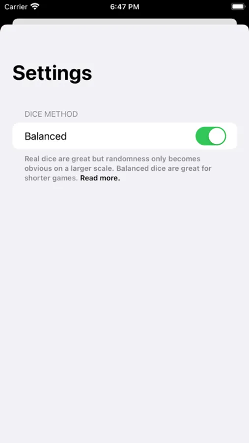 Dicey also comes with a balanced mode that uses a card deck algorithm to ensure you get a more perfect distribution of rolls.