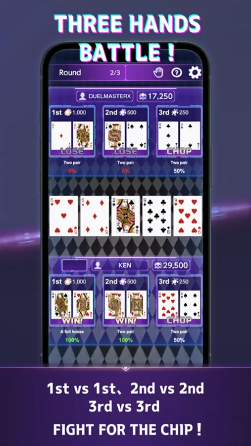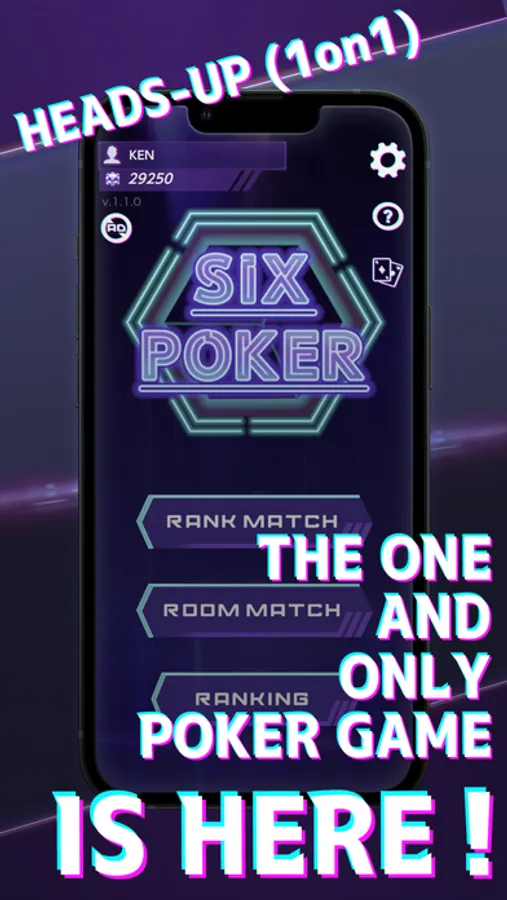 SIX POKER とは、ヘッズアップ(1対1)で戦う特殊ルールのポーカーゲームです。