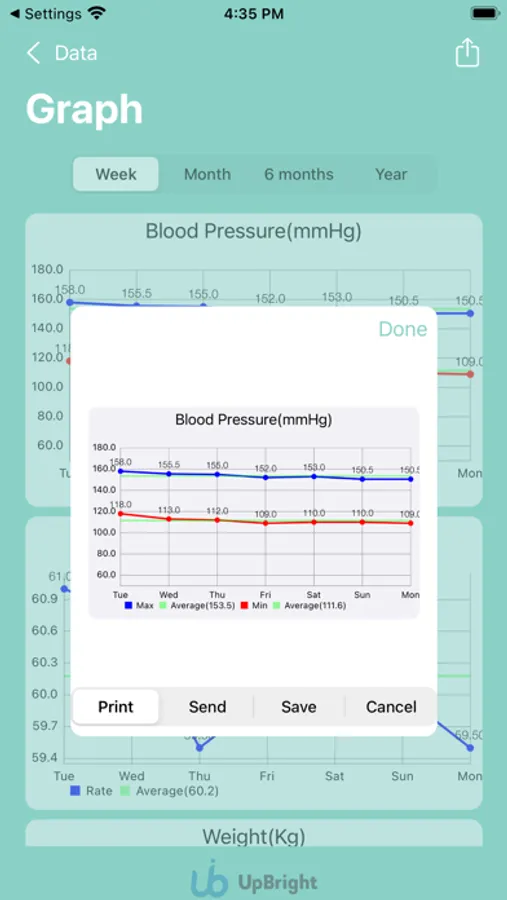 Graphs can be printed, sent by email, and saved so they can be presented to your doctor.