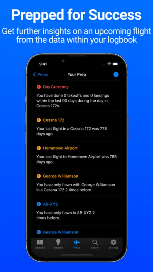 - Prepare for an upcoming flight, surfacing information that may be relevant to your flight that can be found in your logbook.*