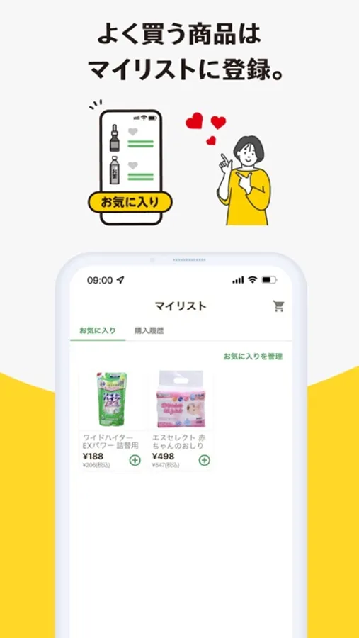 ・定期購入や気になる商品を「マイリスト」に保存できるので、スムーズに注文できます。