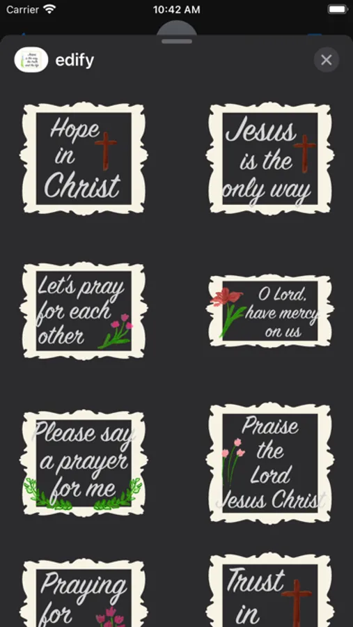 This is a collection of Christian edifying message stickers. It includes verses from the Bible, Douay-Rheims version. It also includes stickers with lighter text to support dark mode. Blessings to you.