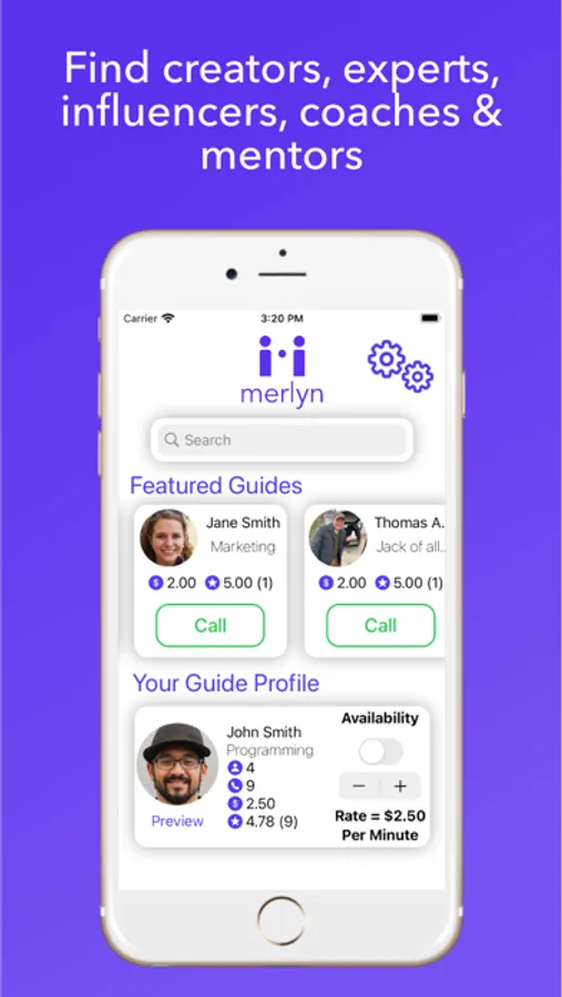 With Merlyn, you have complete control over your availability and rate. You can adjust your rate at anytime, and you will only receive calls when you turn your availability on. We are committed to making Merlyn the next great tool for creators so if you have any suggestions or questions, please do not hesitate to reach out! Our email is support@getmerlyn.com.