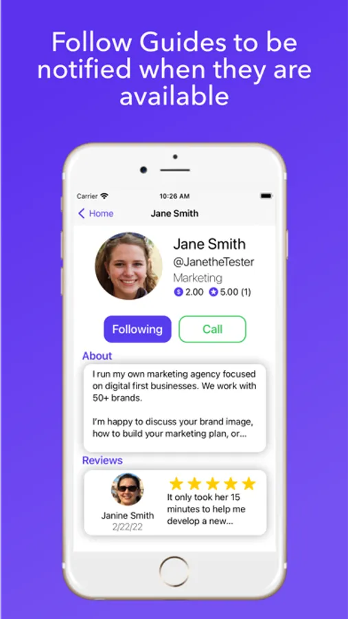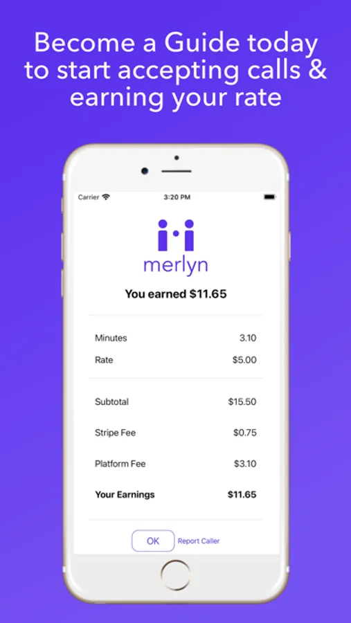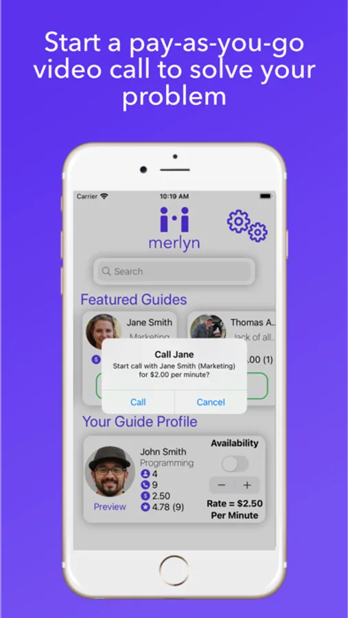Merlyn is easy to use. If the Guide you want to talk to is available, their call button will appear green. Click on it and confirm to start a call. Once you are done, hit the end call button to stop the timer, process your payment, and leave a review. If you had an exceptional experience, you can also leave a tip for your Guide!