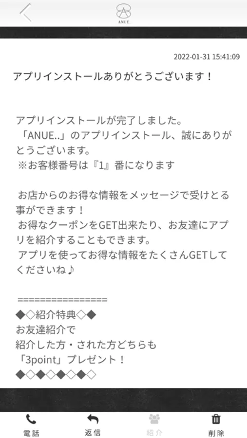 ANUE..のアプリをSNSを通じてお友達に紹介する事ができます。