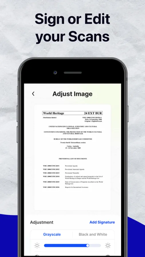Your scans are stored as multi-page documents which you can export to PDF later. You can also create your document by selecting images or documents from Camera Roll or using your iCloud.