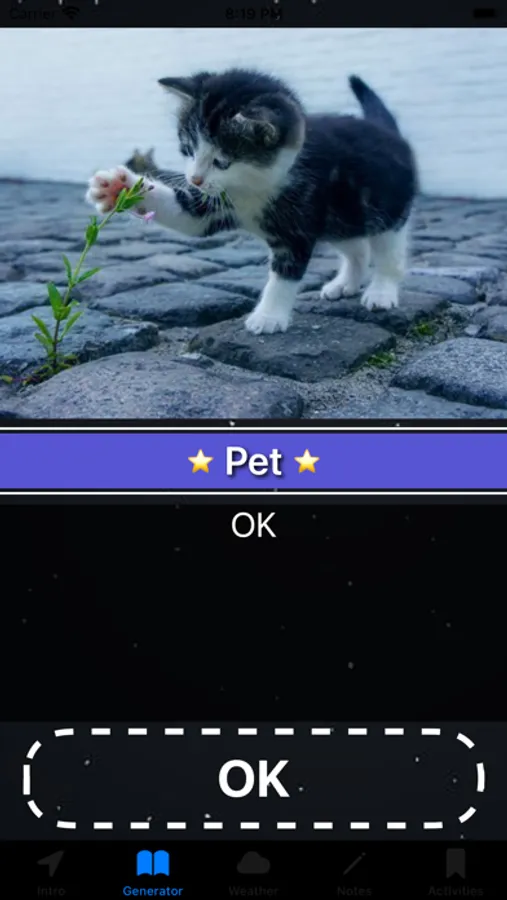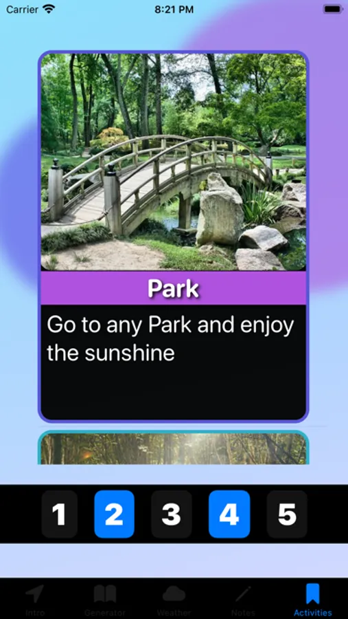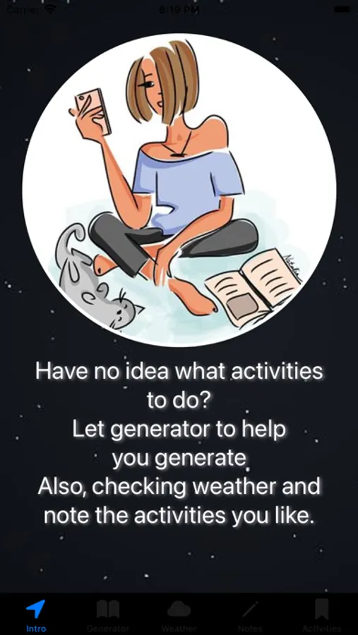 Our app is designed to help you generate different activities based on your preferences and the weather conditions outside.
