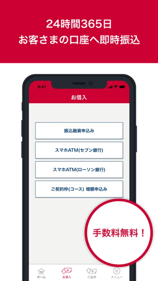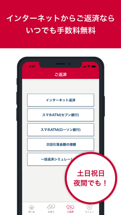本アプリからお手続きいただくと、いつでも手数料無料でご返済いただけます。
