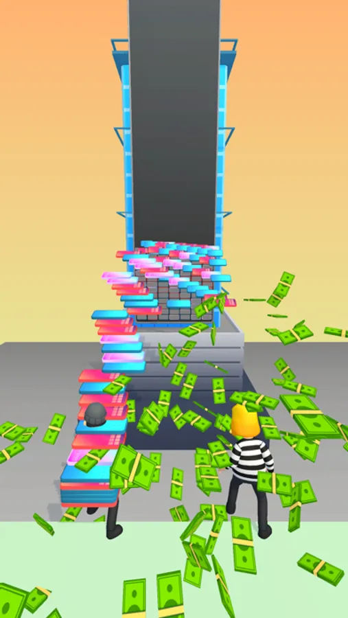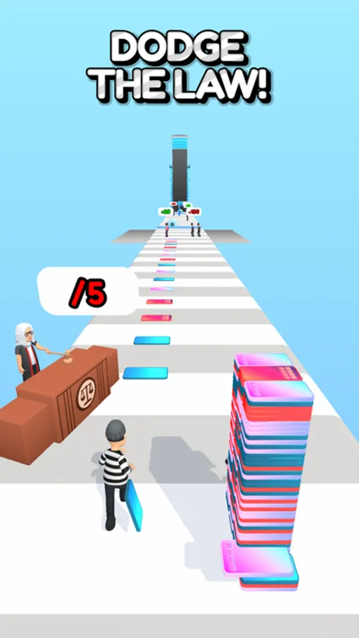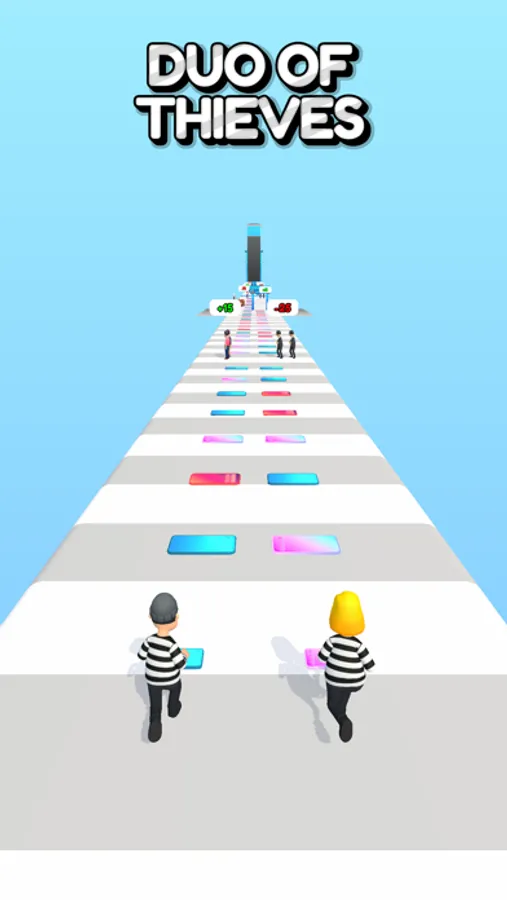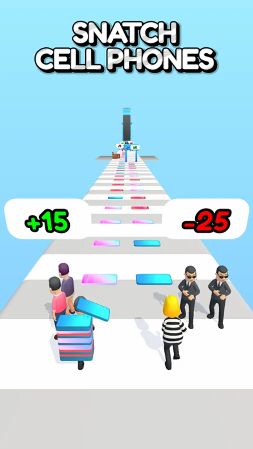 Tap and hold on the left or right side of the screen to shift the cell phones between each thief. Got an opportunity to double the payload? Max out the stack! Heading to court? Quickly shift the gear to your buddy!