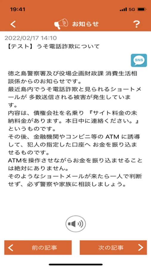 役場からのお知らせや防災情報を音声と文字で確認することができます。