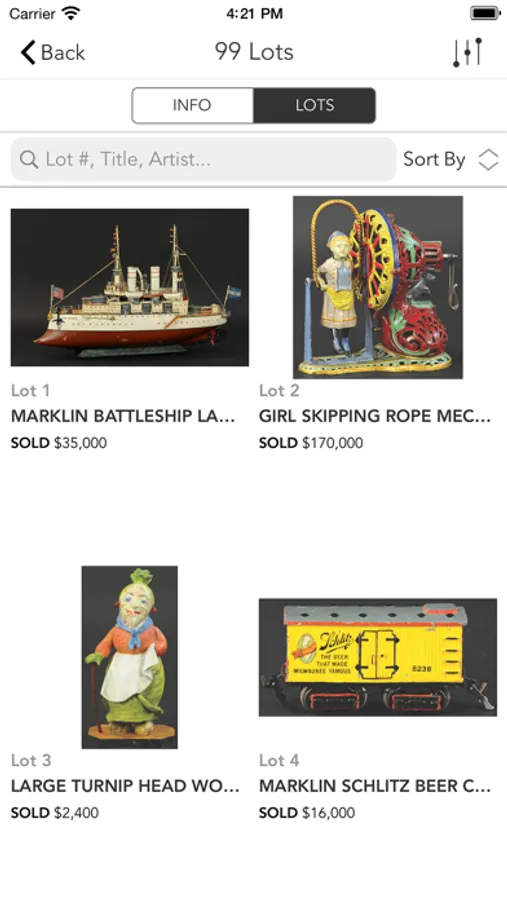 Bertoia Auctions, located in Vineland, NJ has been the worlds premier auctioneer specializing in antique toys and collectibles since 1986. The house conducts multiple sales a year with focus-on turn of the century collectibles. With numerous world records established annually, our auctions have set the industry standard for more than three decades. With the Bertoia Auctions app, you can preview, watch and bid in our auctions from your mobile / tablet device. Participate in our sales while on-the-go and gain access to our following features: Quick Registration Following upcoming lots of interest Push notifications to ensure you engage on items of interest Track bidding history and activity Watch simulcast live auctions