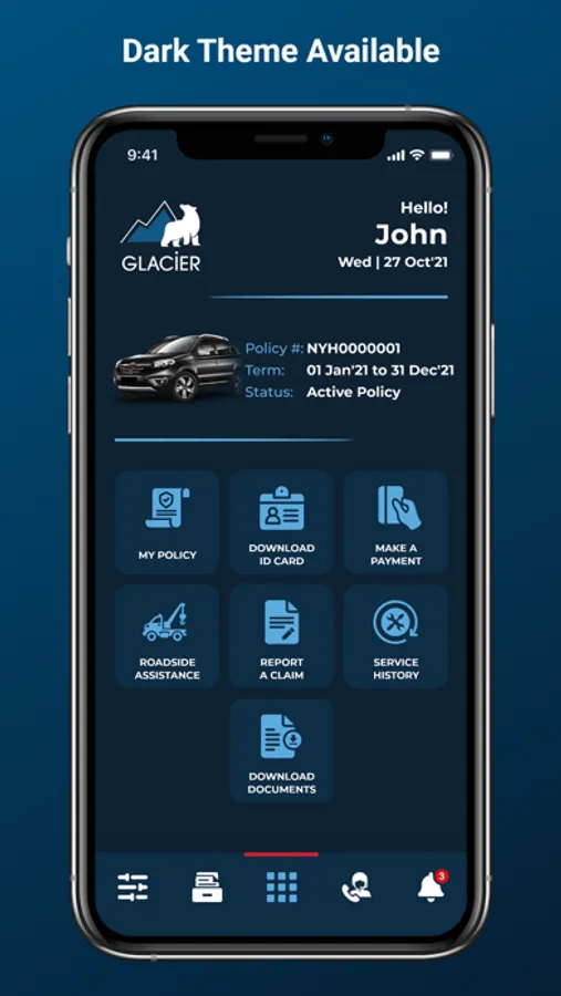 • Access and download your insurance ID card instantly after purchasing a policy from Glacier