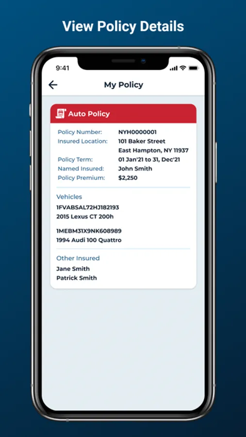 • Access your insurance service history including previous payment dates, reported claims, and more