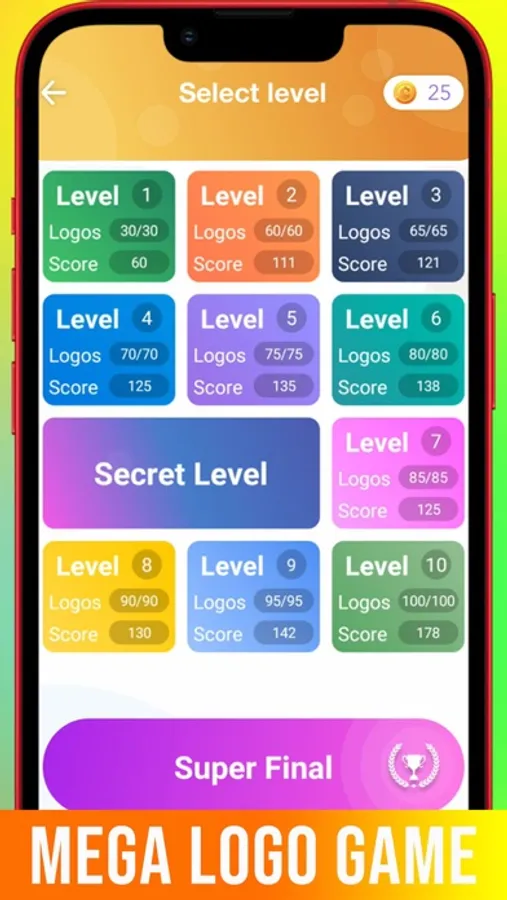 More than 3000 logos, including the ones, which brands used to have throughout the years — a secret historical level. In 23 levels of this brand logo quiz game, you will see car and fashion logos, guess the airlines' badges, food and beverage emblems.