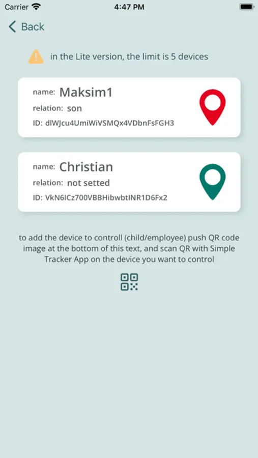 The Simple Tracker application combines two interfaces - for the Parent ("Controlling") and for the Child ("Controlled") - switching is carried out during the Login process in the application. For the application to work: