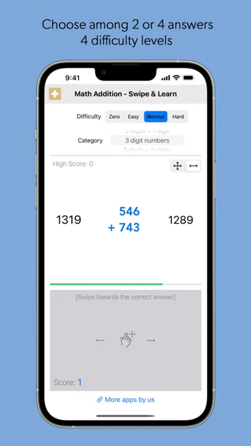 • 2 swipe modes: 4 answer choices or 2 answer choices