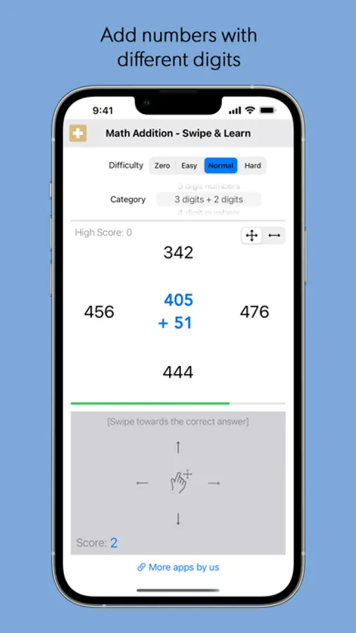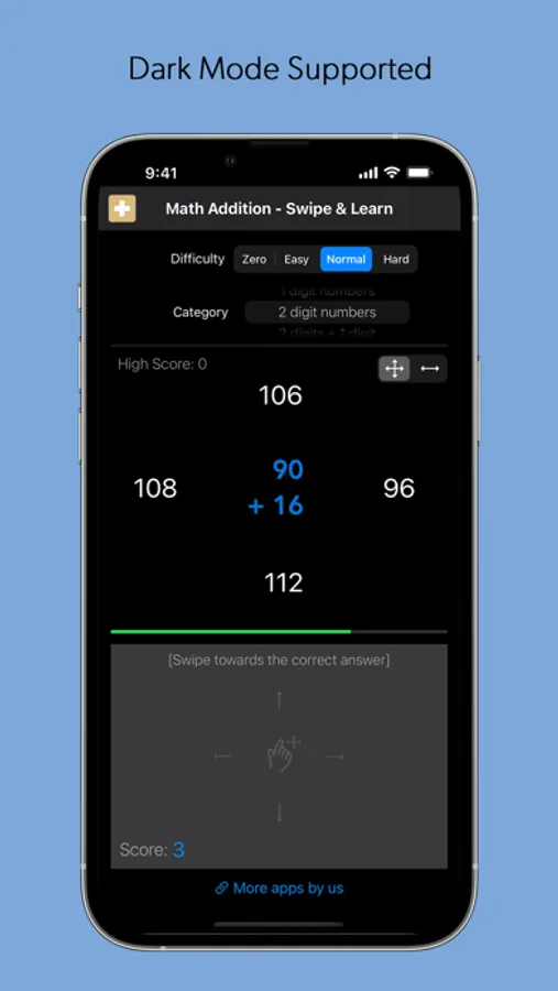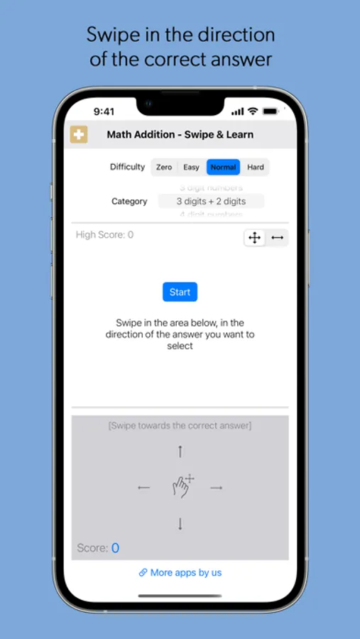 • High scores are maintained for each combination of difficulty level, category and swipe mode