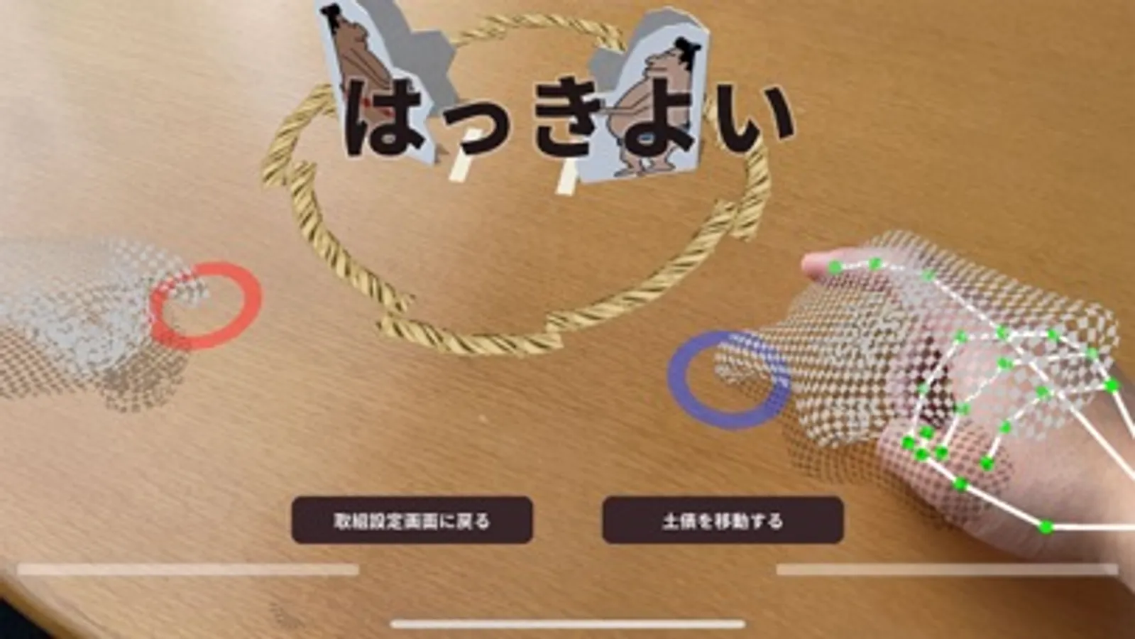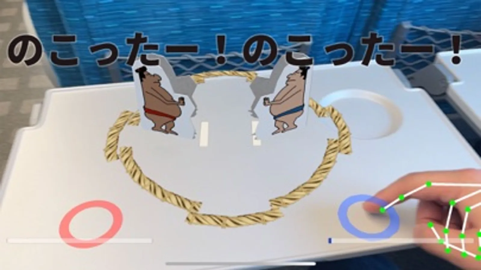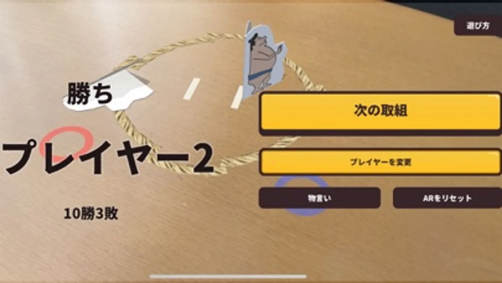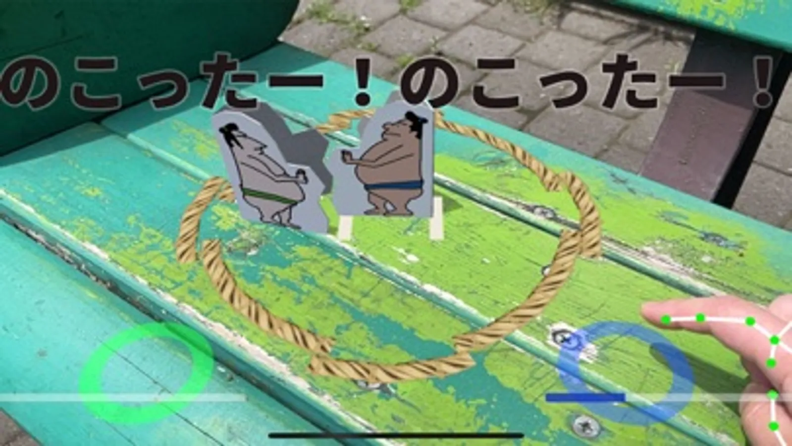 It is a smartphone game where you can enjoy paper sumo, which is a nostalgic play in Japan, in AR.
