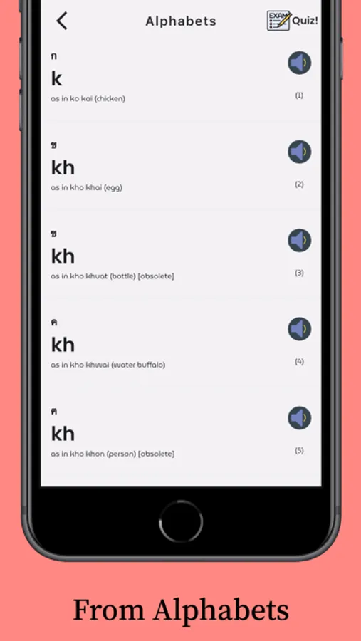 Learn Thai Language free with the most effective language learning app for free. You can learn Thai from basic to advance level. This app will help you to be an expert in Thai language. Learning Thai fast at home with our course in your mobile / tablet. You can learn Thai phrases & words from thousands of Thai words available in app. This is a best Thai language course for beginners.