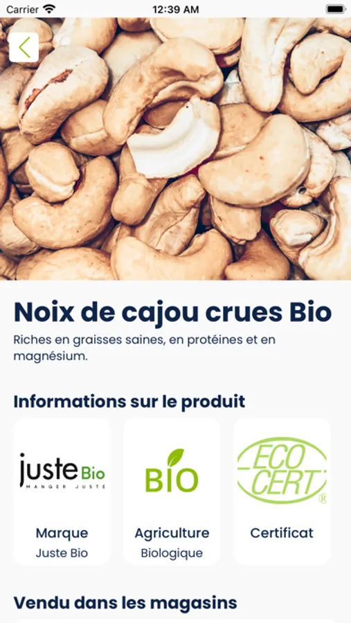 Our mobile application, connected to our bulk distributor 2.0, will allow you to have useful information about your bulk purchases and their characteristics, their ecological impact on the planet but also the location of the different shops, and recipe ideas!