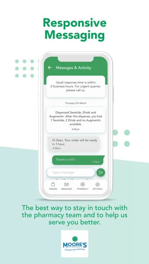 The Moore's Pharmacy app is powered by PharmacyConnect. To contact the app developers, email hello@pharmacyconnect.ie
