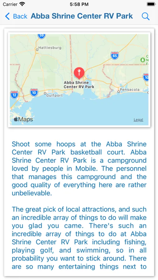 Use this app to Provide Complete information about RV Parks and Campgrounds in USA State wise by Location, Amenities, Parks, Address, reviews, phone number, timings, inform open or close, distance, provide to share option, Information, Facts, Map, Directions, Rout Map and Near Search.