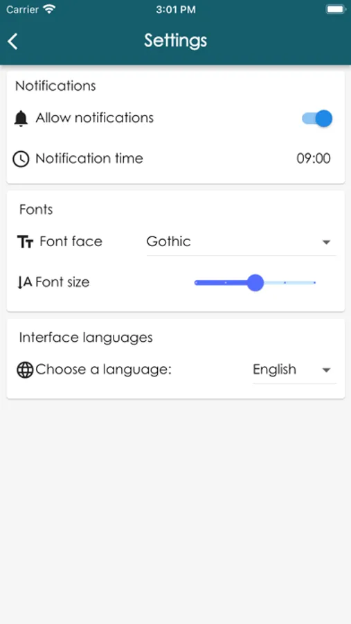 This app provides daily Bible verses and a short thought about these verses.