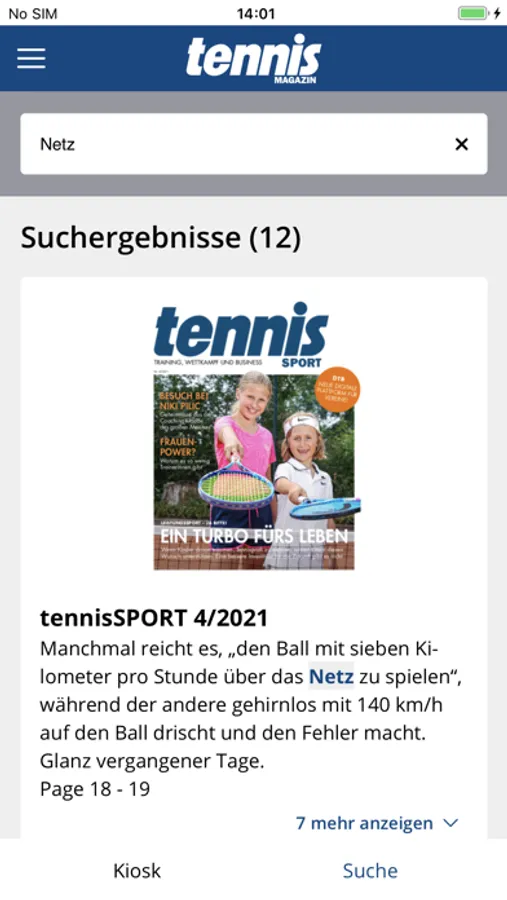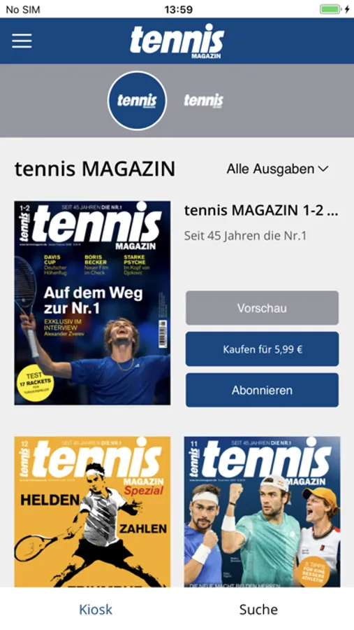 tennis MAGAZIN ist Marktführer bei ambitionierten Hobbyspielern und Fans der Profitour. Neben spannenden Reportagen über große Turniere und Highlights aus der ganzen Welt finden Sie in tennis MAGAZIN ausführliche Porträts und Interviews mit den Stars der Tennisszene. Umfangreiche Schlägertests und wertvolle Tipps und Tricks von Experten erweitern Ihr Know-how und machen Lust auf das nächste Match.