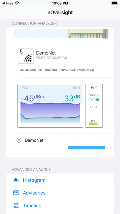 With nOversight's unique approach, in seconds you can access your connection history during the last 24 hours and quickly see which WiFi networks have been performing badly. Instantly identify WiFi which has been providing a weak signal and zoom in on exactly which parts of your WiFi network are causing the trouble. Explore spots with strong WiFi connectivity and get the complete performance details of any WiFi in seconds. On top of that, you can also get details like WiFi tech-specs and coverage issues with the help of this app.