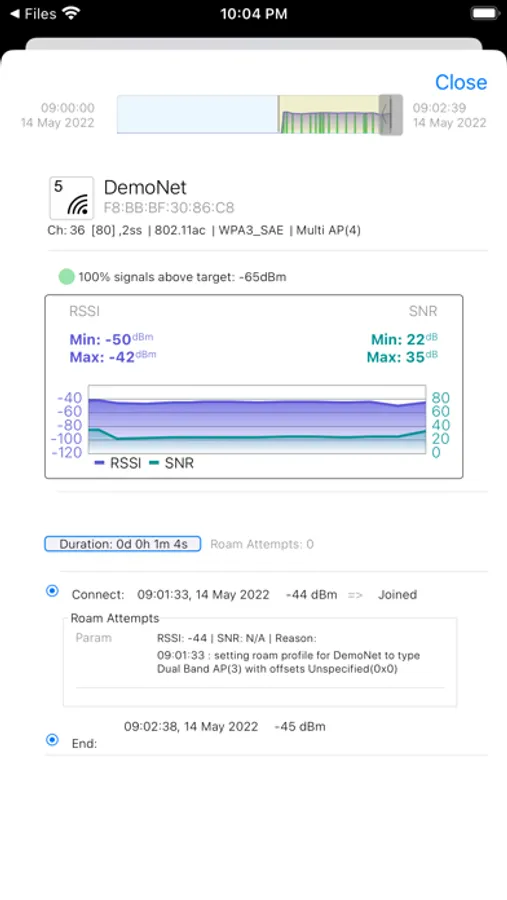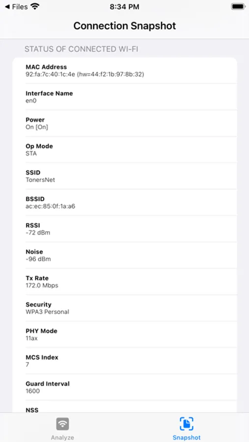 Technical Details: See true signals as RSSI (in dBm) and SNR. Many Access Point details including channel, bandwidth, technology. See roaming decisions with IEEE reasons. Find out about your WiFi 6 router connections (WiFi 6E coming soon).