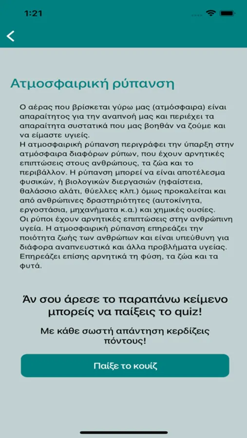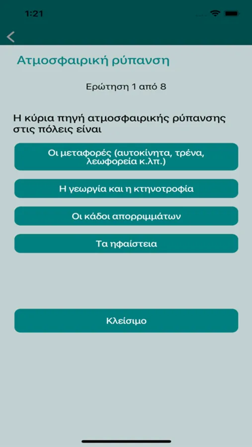 Η ενημέρωση των πολιτών σχετικά με τα θέματα της ατμοσφαιρικής ρύπανσης, του θορύβου και της αναβάθμισης του αστικού περιβάλλοντος.