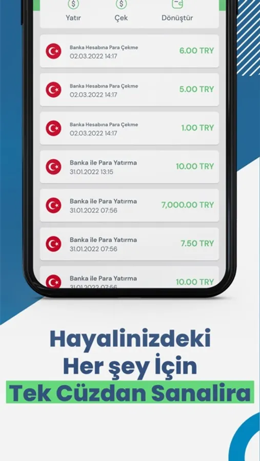 Sanalira'da para yatırma / para çekme işlemlerinizi 7/24 yapabilirsiniz. Bu işlemleri tek tık ile kolay bir şekilde yapabilirsiniz.