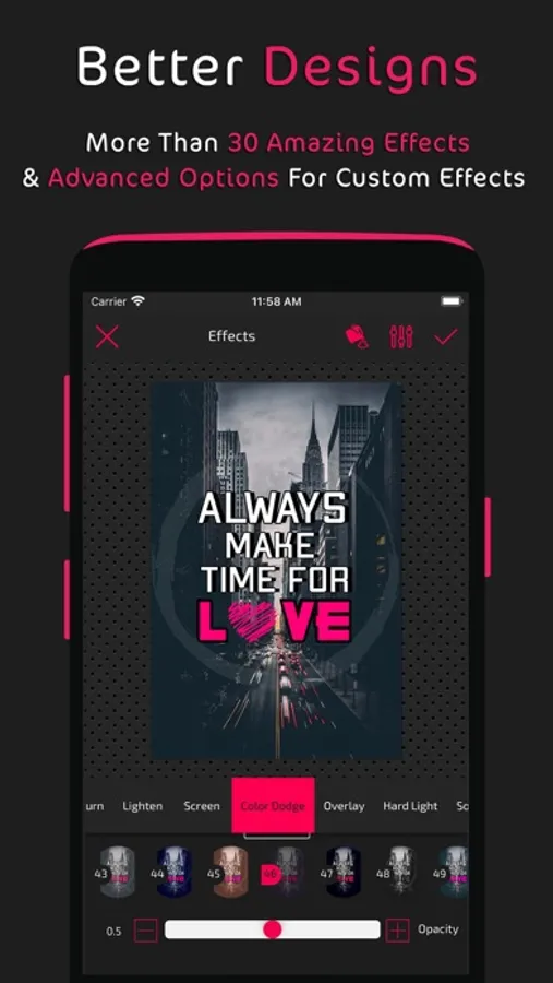 We also included other features we leave for you to explore and benefit from in your own creative way as you use the app and make your own posters and design and edit your own image.