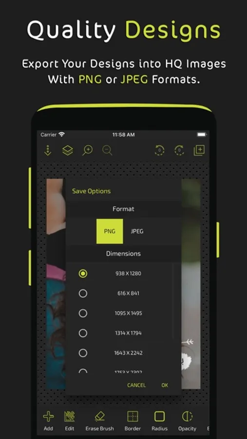 1- Save as a PNG photo with multiple resolution options.