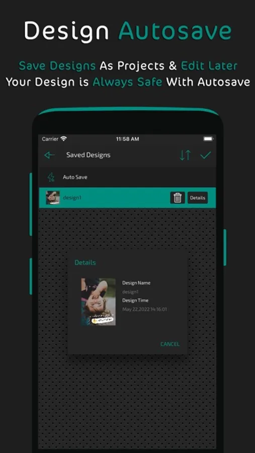 3- Save as a design you can revisit and edit later and with design auto save.