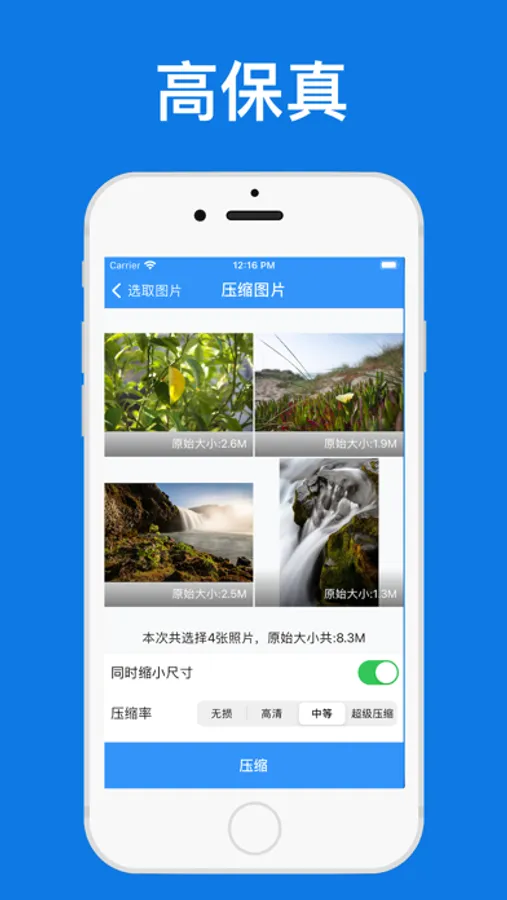 多种压缩参数供你选择,你可选择需要的参数进行压缩,大幅节省手机内存。