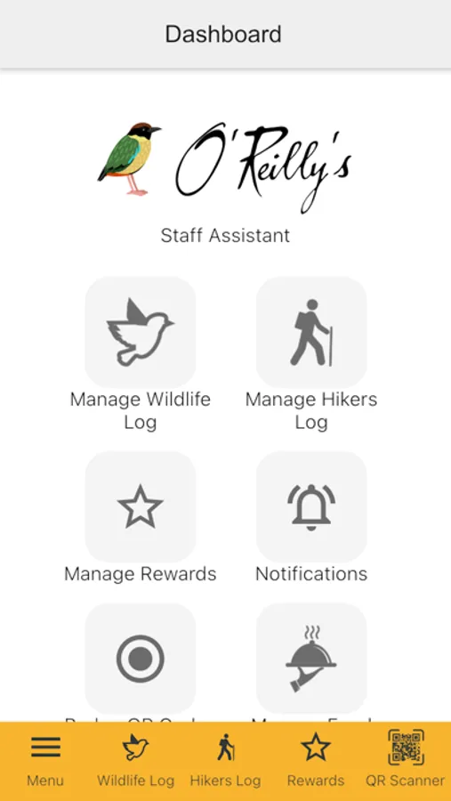 A tool for O’Reilly’s staff to manage customer rewards, public wildlife log, hikers log, manage and send notifications, and display badge QR codes.