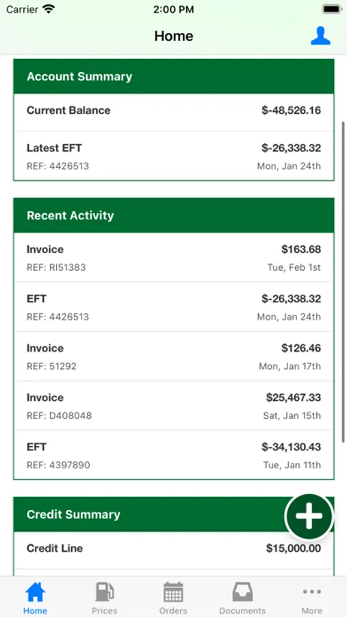 - Access credit card history