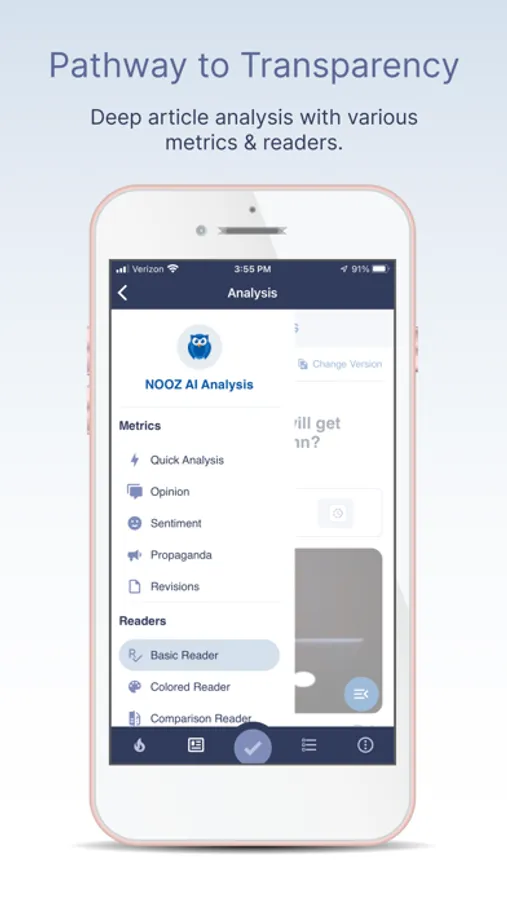 ARTICLE ANALYSIS: Get visual insight into media bias via labels for opinion, sentiment, propaganda, revisions, and ghost edits on each news listing.