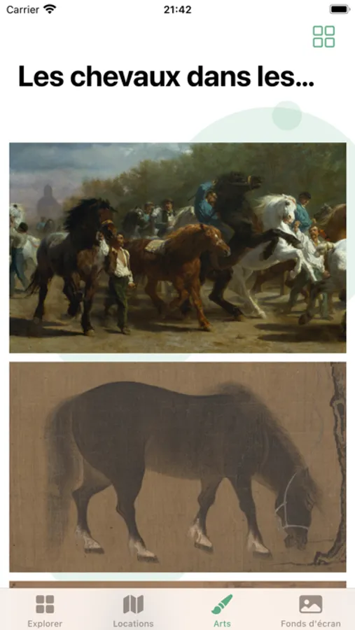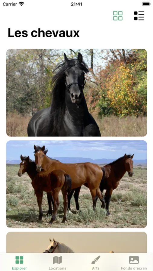 Destiné aux amoureux des chevaux, Horses vous permettra d’avoir des informations sur vos races favorites, leur origine, comment les hommes les ont représentées à travers les arts, et télécharger de magnifiques fonds d’écrans.