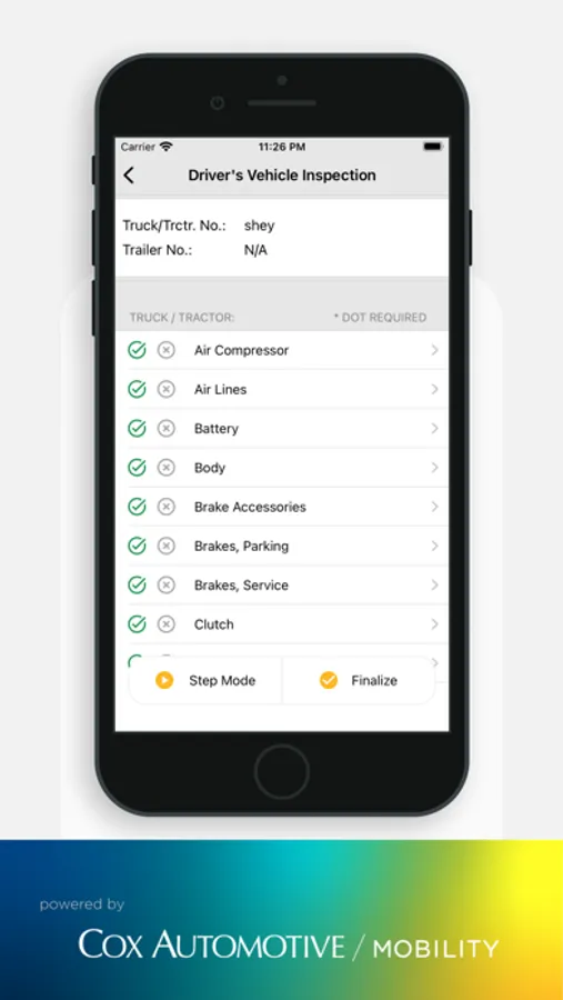 DVIR - Driver Vehicle Inspection Report - powered by Cox Automotive Mobility is now available! This app easily guides users through the process of a vehicle inspection, including all required steps, simple notation of issues and the necessary repairs. All data is contained and finalized in a report format that can be saved and exported to email or print - meaning a copy is always available as needed.