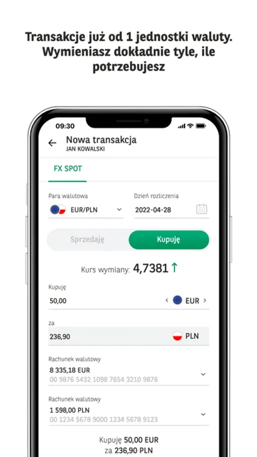 - Nowoczesny i intuicyjny design - aby zwiększyć czytelność wymiany walut.