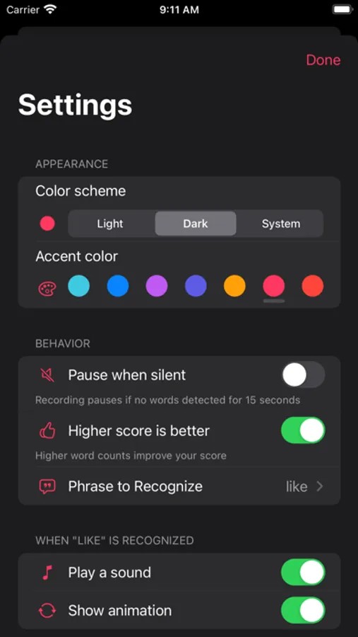 “Like, Wow!” has a number of features to customize its behavior and appearance:
