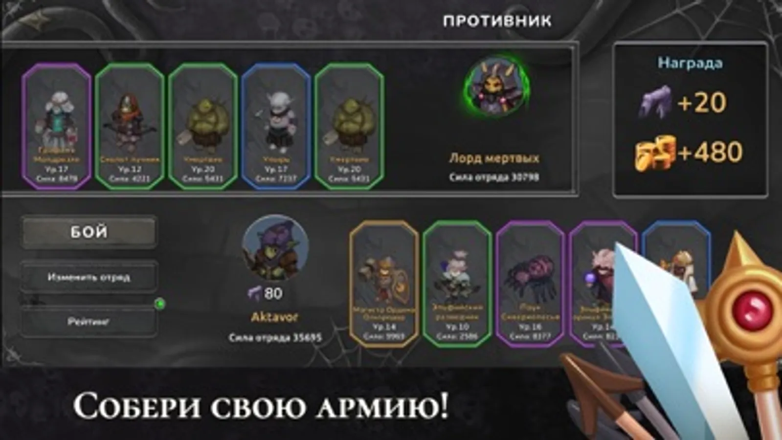 Тебе предстоит собрать отряд из 5 юнитов и опытным путем выяснить, какая команда может принести победу. Для начала можно будет потренироваться, отточить тактику, попробовать разные комбинации, а после уже попробовать свои силы на арене, выставив свой отряд против других игроков.