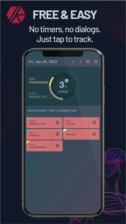 There are no timers and no dialogs to create and track time spent on your tasks.