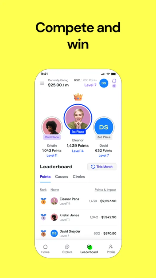 Anyone can start or join a giving circle. Invite your friends. Compete on the leaderboard. Earn rewards and discount coupons from brands you love by joining their circles.