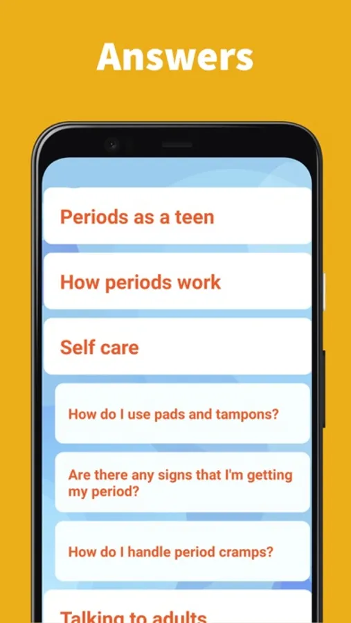 Got questions about periods? We've got answers! The interactive learning section has all the information that teens and anyone just starting their period need to know. It will also help you get yourself ready even if you haven't started your period yet.